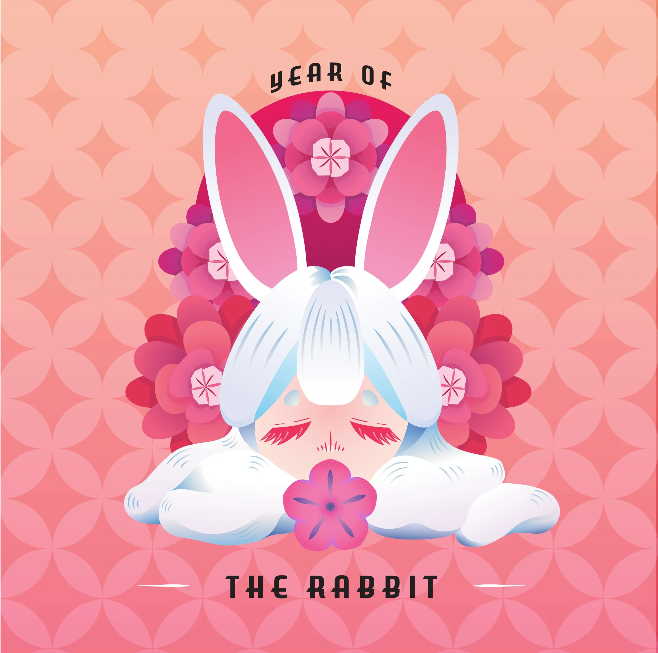 2023 was the year of the rabbit for the Chinese zodiac. To celebrate, I needle felted a framed piece of a rabbit girl. And to go along with my felted work, I created an illustration in Adobe Illustrator. Unfortunately the flowers in the background aren’t visible due to the frame, so I revealed them more in the illustration.